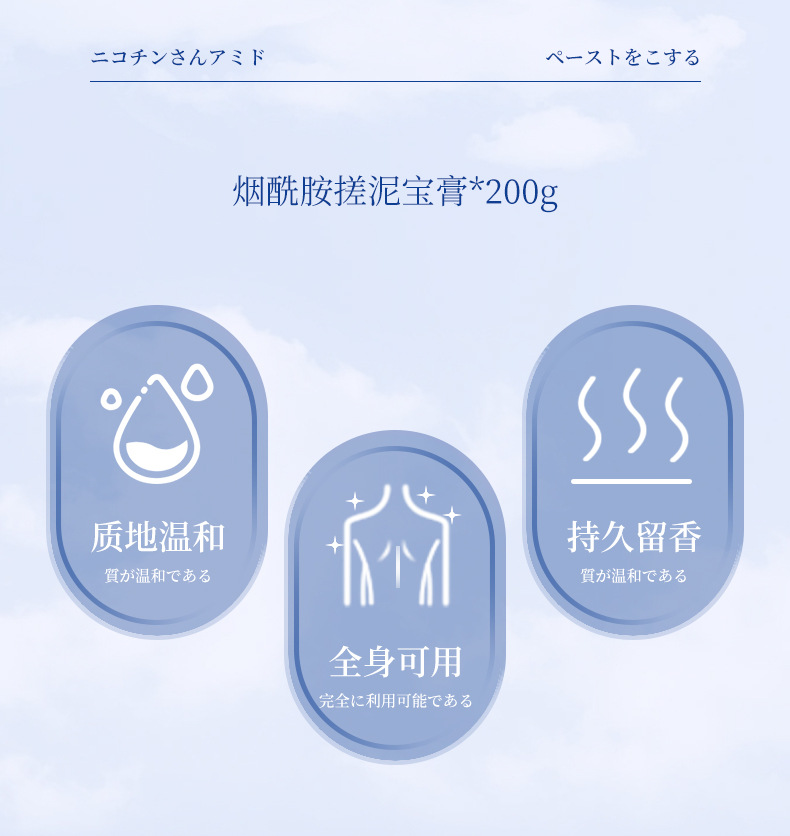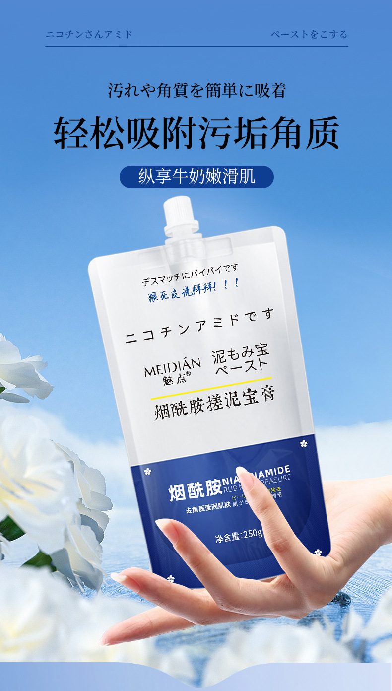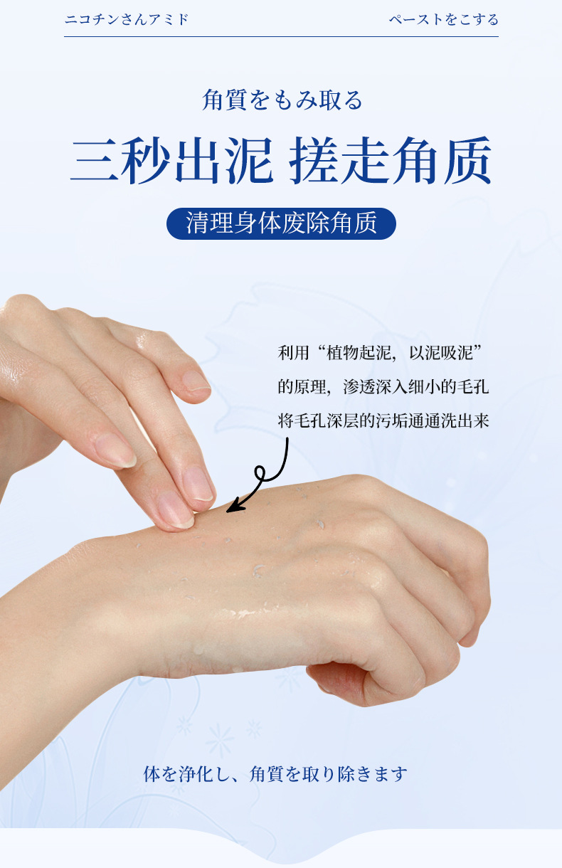 日本煙醯胺搓泥寶膏為美白搓泥膏、男女可用美白搓澡泥神器,一抹一洗20秒,輕輕一搓,白淨滑靚,搓出嫩滑牛奶肌,全身清潔保濕去角質潔白無暇夏日必備產品。